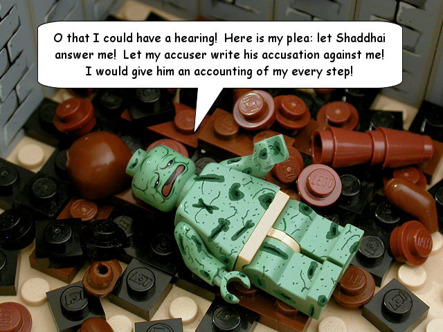 Job 31:35, 37 'O that I could have a hearing! Here is my plea: let Shaddhai answer me! Let my accuser write his accusation against me! I would give him an accounting of my every step!'